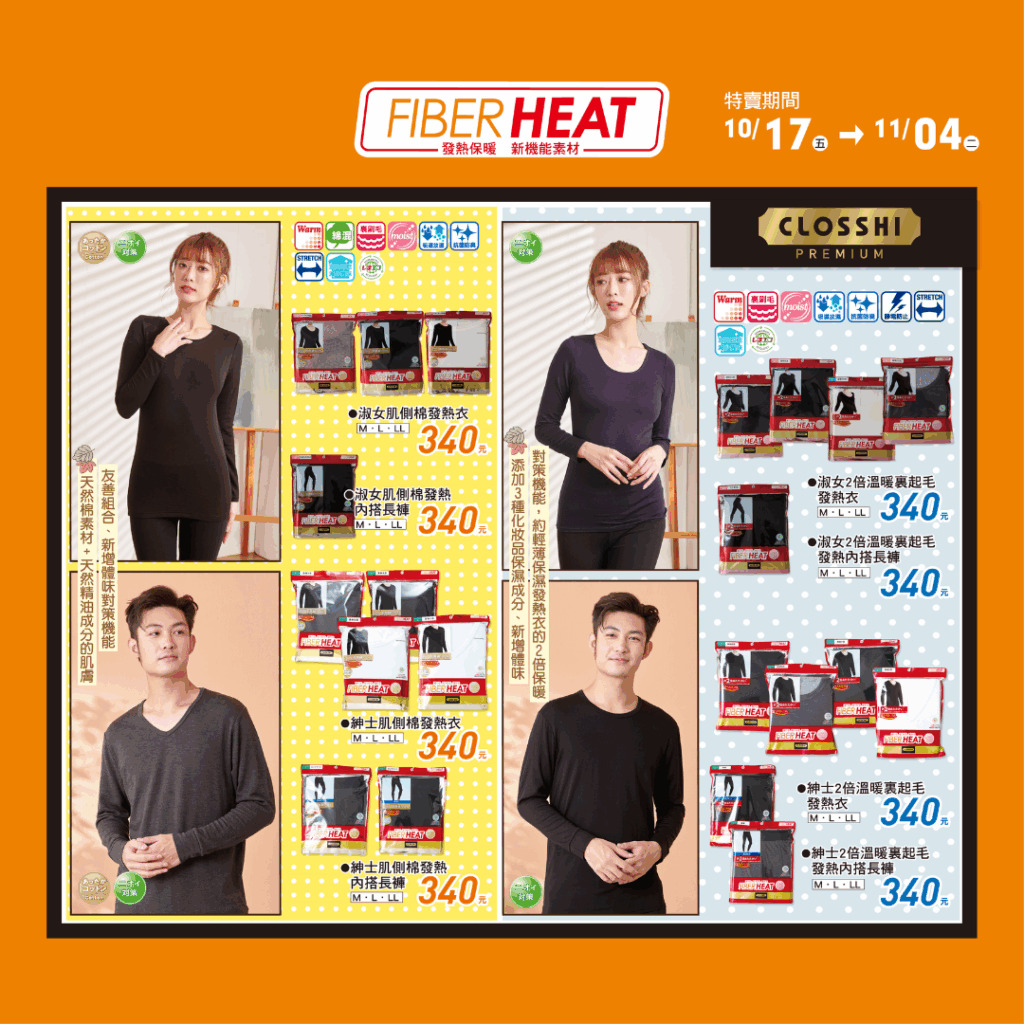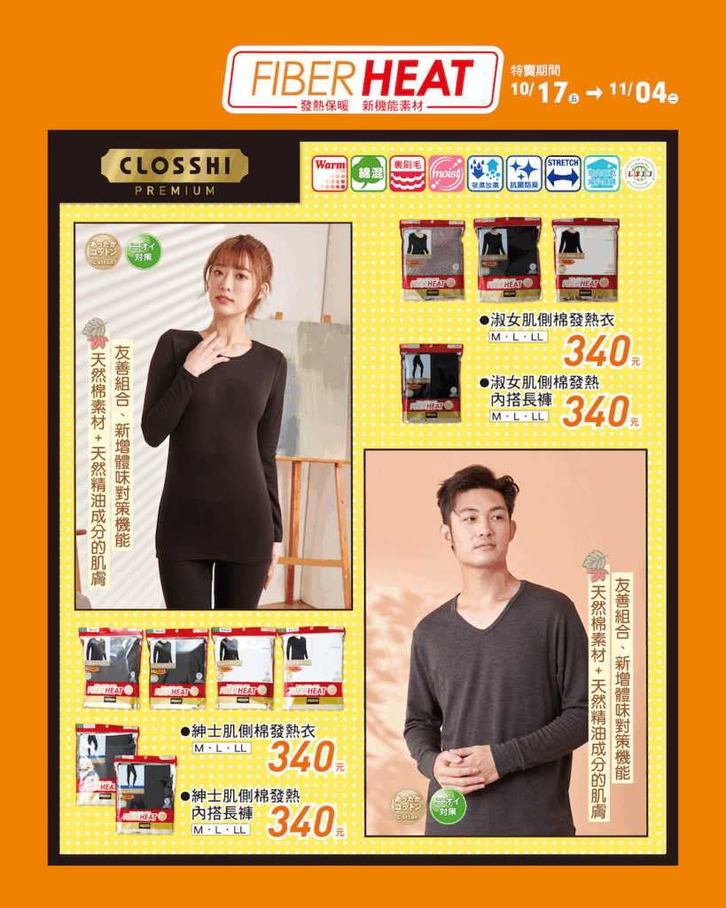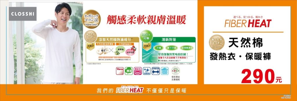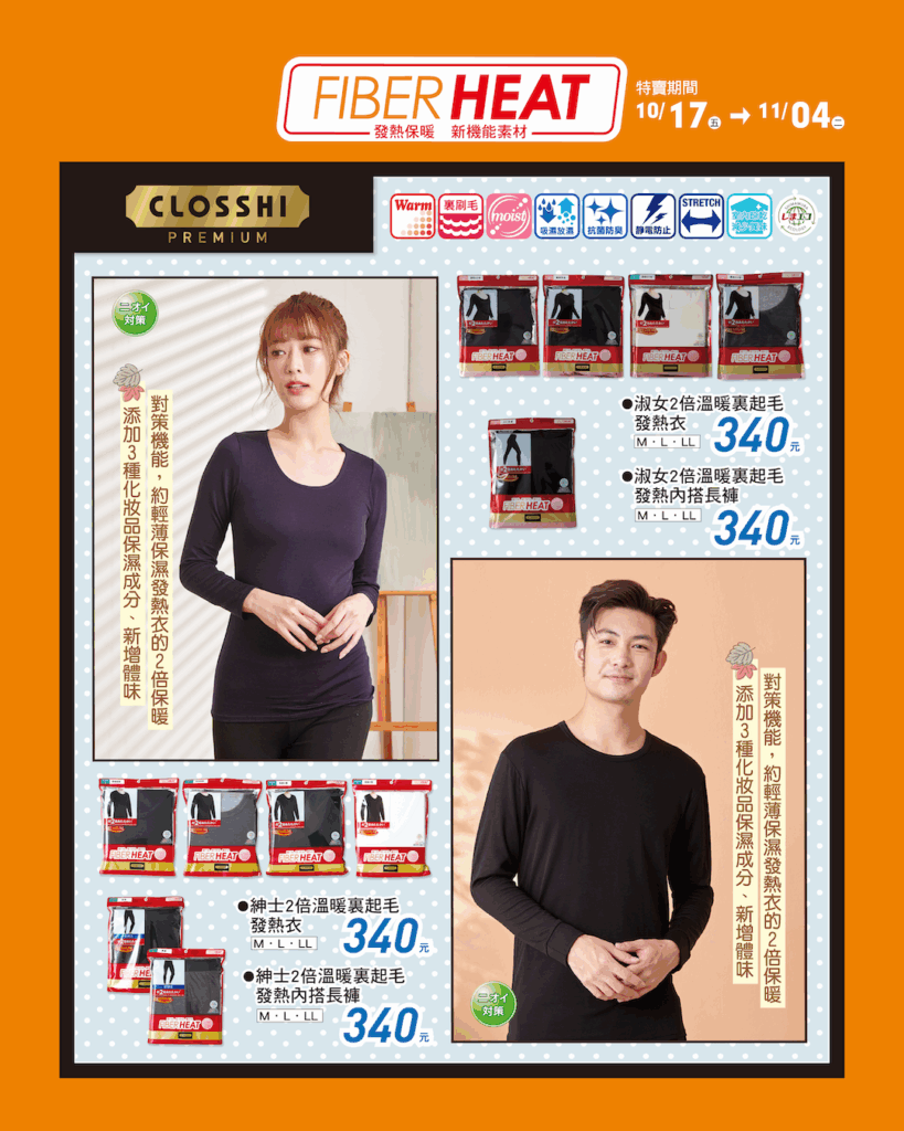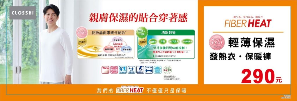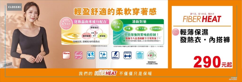 趕快入手你的 FIBER HEAT 發熱衣,讓溫暖從貼身第一層開始,從心也從身體感受「真的暖到心坎裡」的冬日奇蹟!