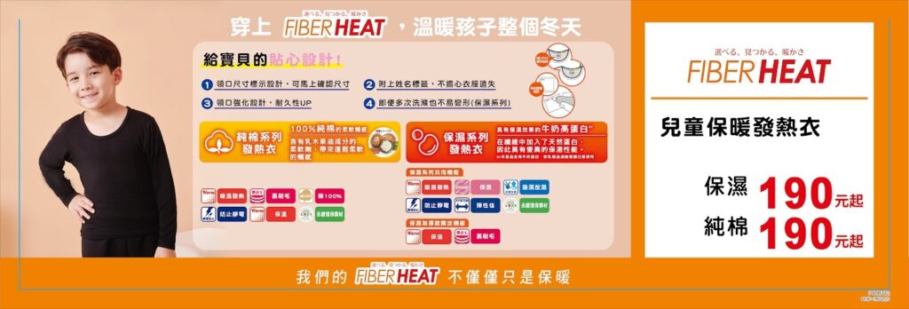 兒童系列發熱衣系列還有強化領口、姓名標籤的貼心設計,為孩子與家長多一分考慮。有純棉系列及保濕系列發熱衣給寶貝孩童做選擇,讓家長安心、孩子暖心。