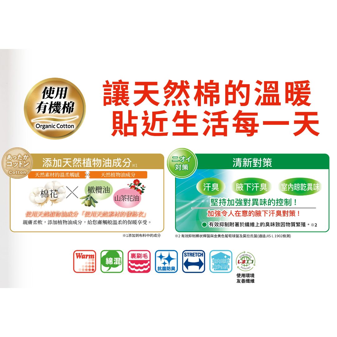 天然棉 × 溫暖科技,冬天也能自在呼吸。天然棉發熱衣褲,柔軟貼膚、安心升溫,給你最純粹的舒適與暖意。